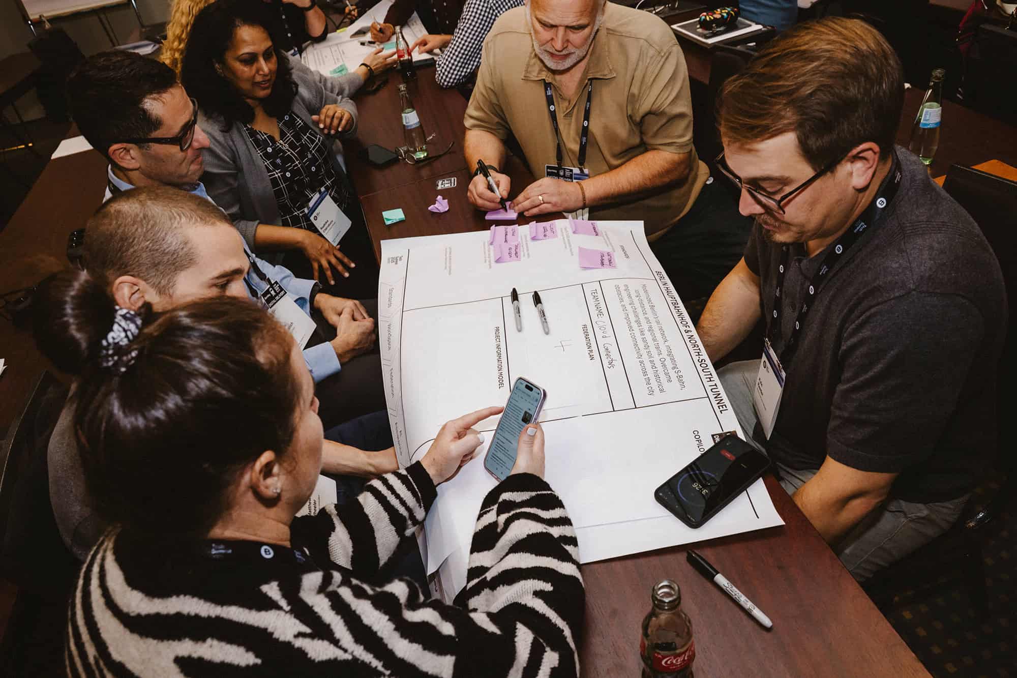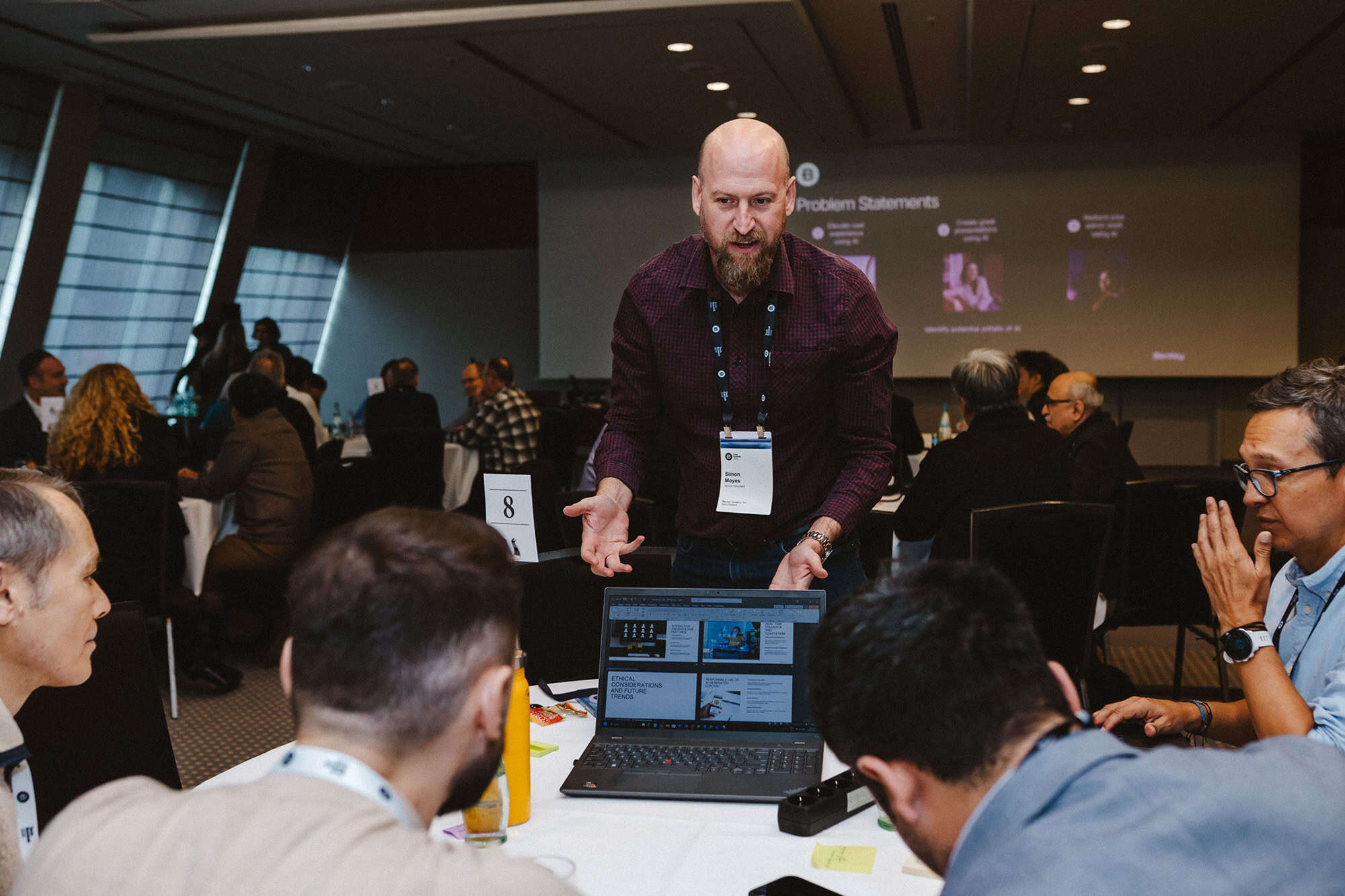 សហការី​កំពុងពិភាក្សា​អំពី​គំនិត និង​ដំណោះស្រាយ​ក្នុង​អំឡុង​ពេល​សម័យប្រជុំ​មួយ​នៅ​កិច្ចប្រជុំ​កំពូល​បច្ចេកវិទ្យា Bentley ឆ្នាំ2025