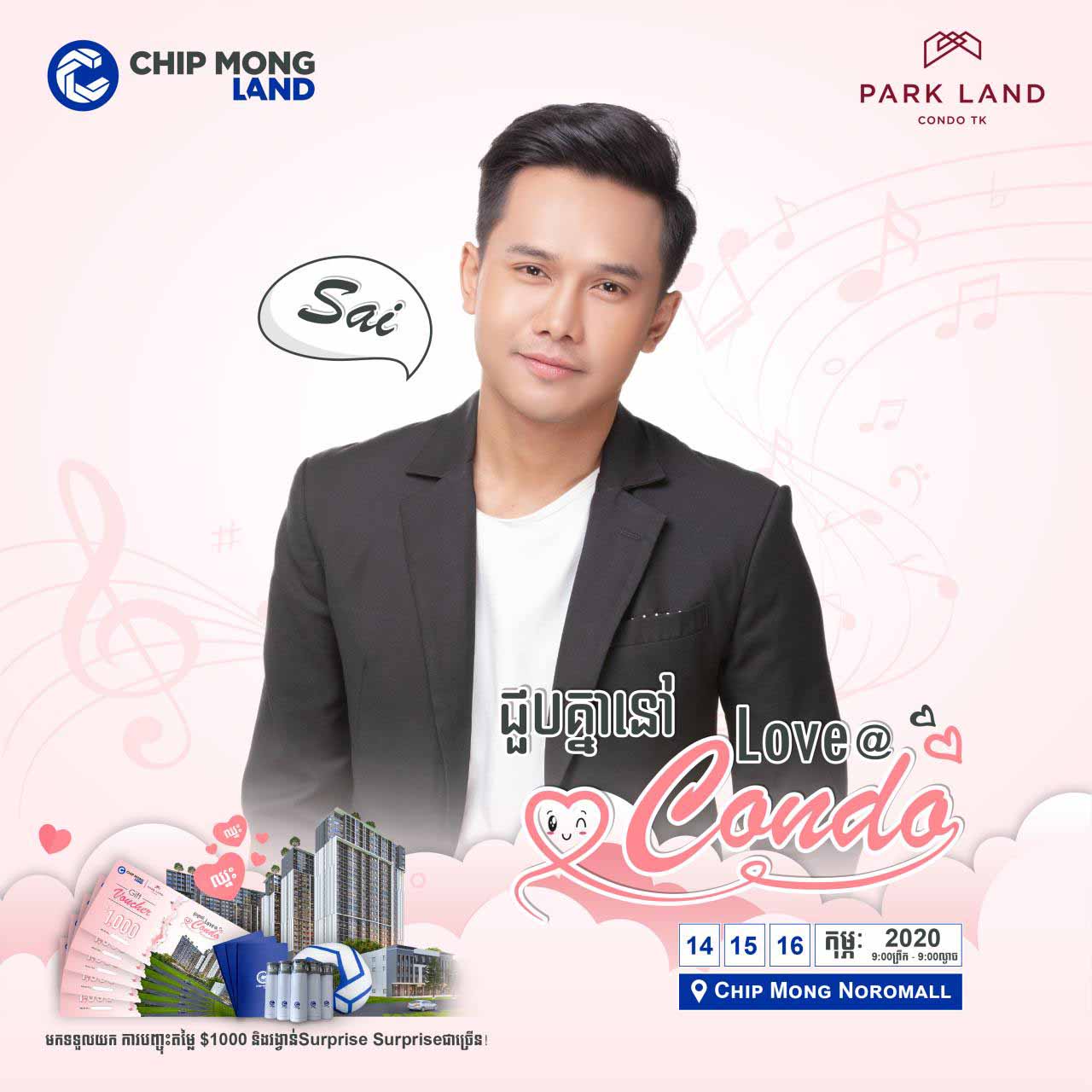 The event aims at sharing fun and love with special offers such as up to 5% condominiums discount and many of US$ 1,000 vouchers. Even more! Customers can also play games to win countless special prizes, take photos with your loved one, and enjoy the show by the famous Cambodian singer, Mr Say.