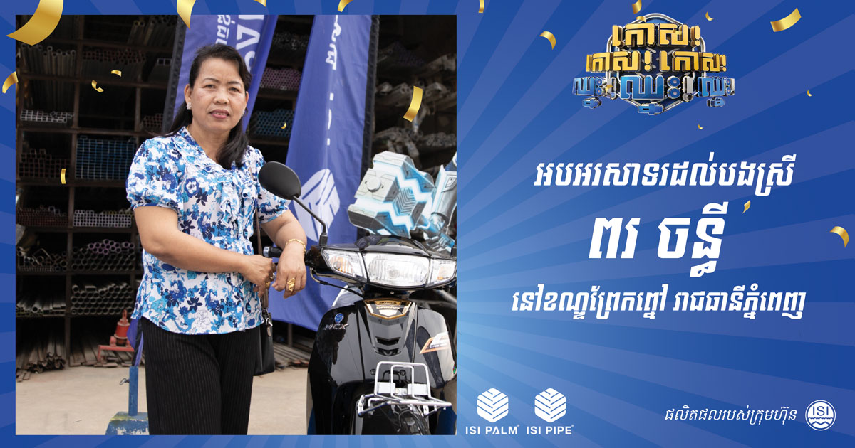 ISI STEEL, for the first time in Cambodia, is offering prizes to customers buying their steel products. Through their Facebook page, the well-known steel processing and distribution firm has recently posted congratulatory photos of their customers who just won brand new Honda motorbikes.