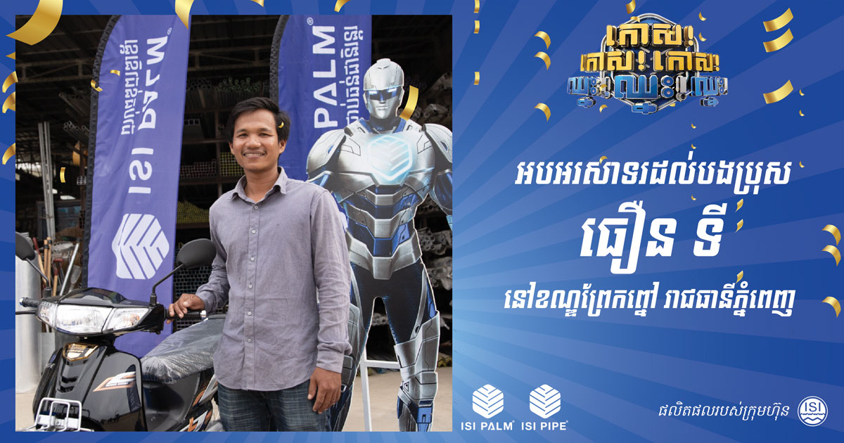 ISI STEEL, for the first time in Cambodia, is offering prizes to customers buying their steel products. Through their Facebook page, the well-known steel processing and distribution firm has recently posted congratulatory photos of their customers who just won brand new Honda motorbikes.