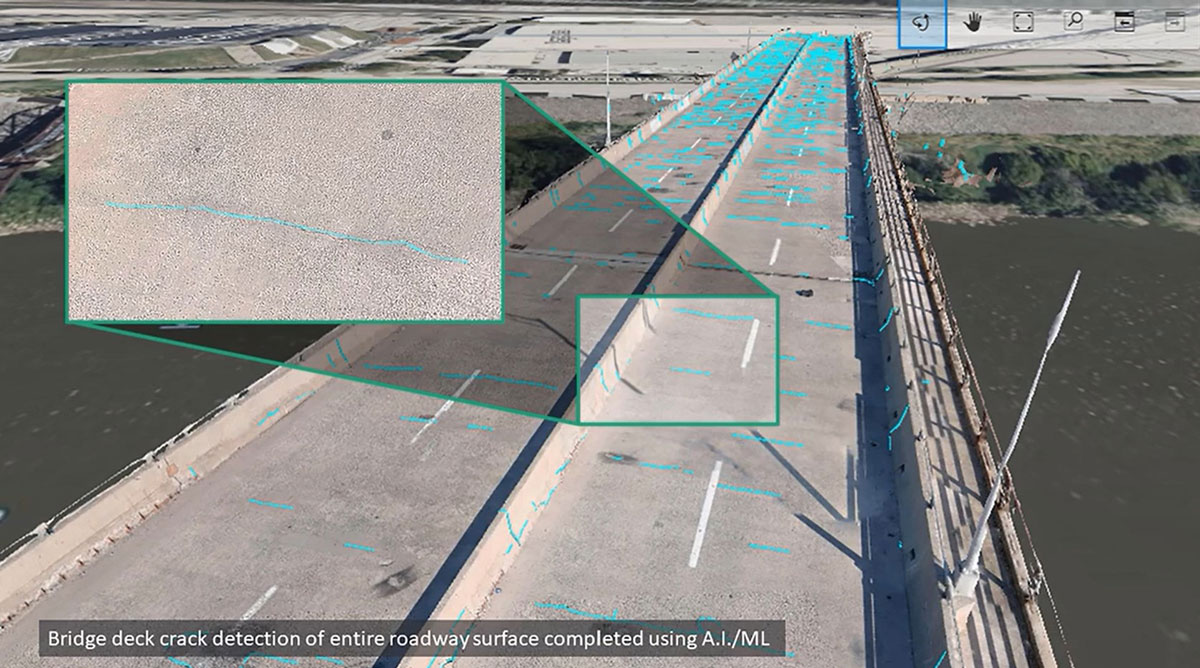 - Leveraging iTwin® with artificial intelligence and machine learning technology automated digitization and integration of crack linework data within the digital twin, saving more than 75% in manual fieldwork.