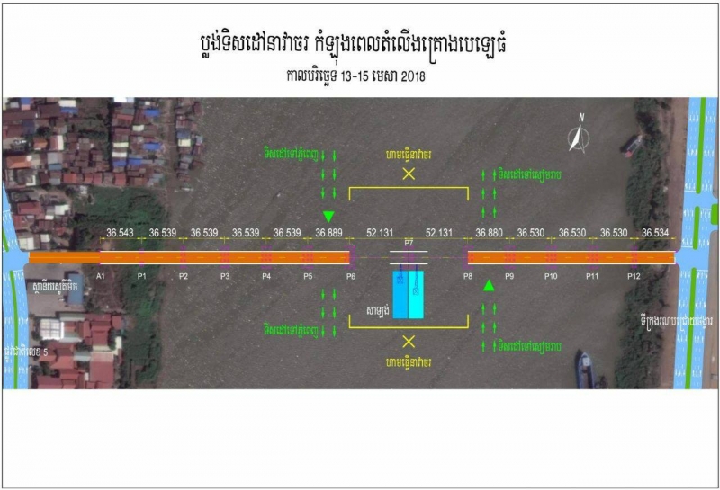 Phnom Penh City Municipality warned all boat operators not to travel under the middle part of the iron bridge during April 13 to 16 as the installation of the last two bridge body parts will take place during that period.