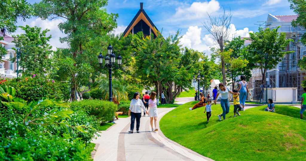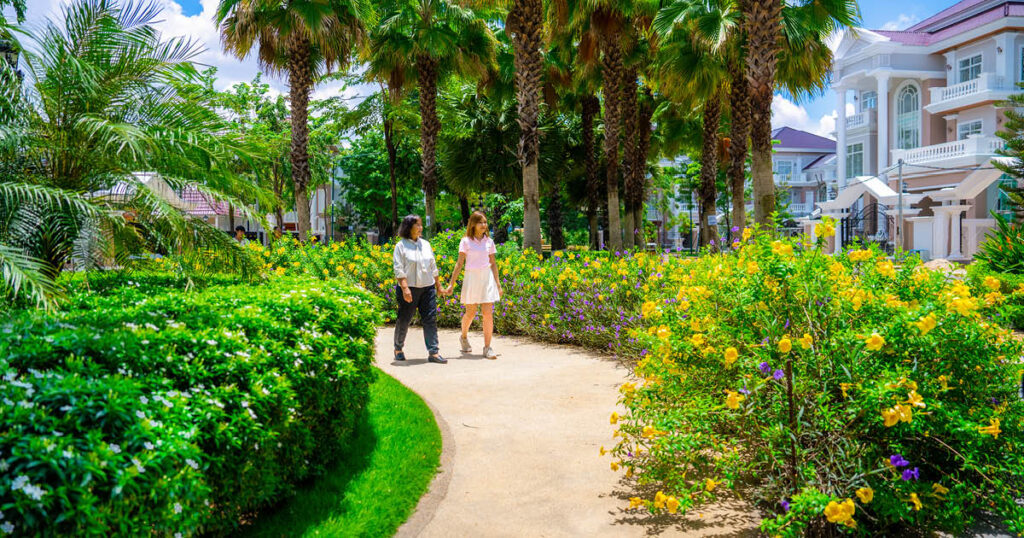 The Star Mera Garden, a premier housing project by Borey Peng Huot in Phnom Penh, offers a perfect blend of serenity and urban convenience, catering to youth and retirement residents. This community stands out with its lush environment, featuring expansive gardens, mature trees, and vibrant flowerbeds, complemented by modern amenities such as a gym and a swimming pool. With tree-lined streets designed to reduce toxic fumes and enhance air quality, the project provides a healthy and rejuvenating living experience amidst Phnom Penh’s bustling city life.