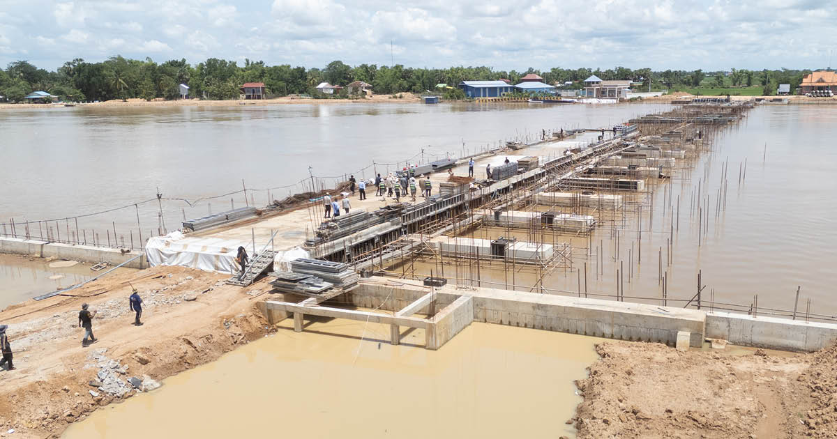 ស្ពានមិត្តភាពកម្ពុជា-ចិន ឆ្លងទន្លេមេមេគង្គក្នុងខេត្តក្រចេះ សង់បានជិត១០០%ហើយ