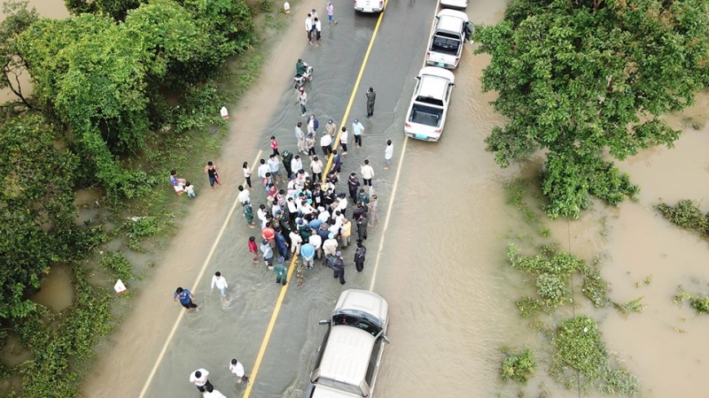 ក្នុងដំណើរចុះពិនិត្យស្ថានភាពទឹកលិចនៅកំណាត់ផ្លូវជាតិលេខ៤ ឯកឧត្តម ស៊ុន ចាន់ថុល បានមាន