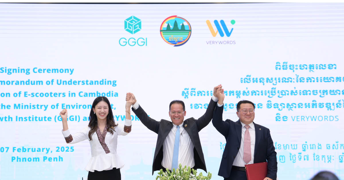 The announcement was made during a signing ceremony of a Memorandum of Understanding (MoU) held on 7 February 2025, attended by representatives from VeryWords, the Global Green Development Institute (GGGI), and Cambodia’s Ministry of Environment.
