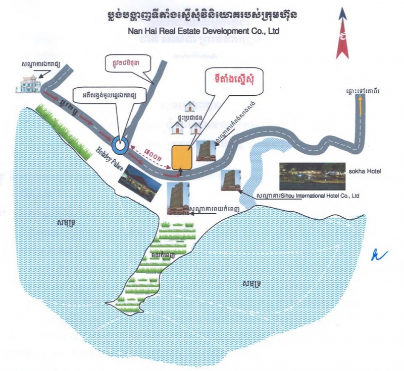 The CDC agreed to let Nan Hai Real Estate Development Co. Ltd build a five star hotel comprising 500 rooms and a commercial centre in Village 1, Sangkat No 3, Sihanoukville Province. The project will cost the company approximately US$86.56 million and is expected to create 1,848 jobs for the city.
